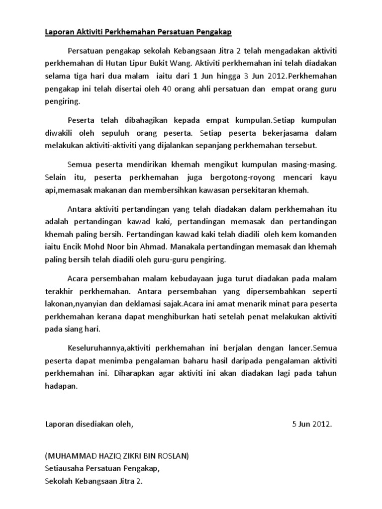 Contoh Laporan Lengkap Aktiviti Perkhemahan Bulan Sabit Merah Collingjb